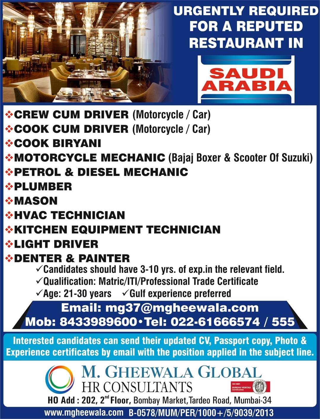 v Age: 21-30 years v Gulf experience preferred