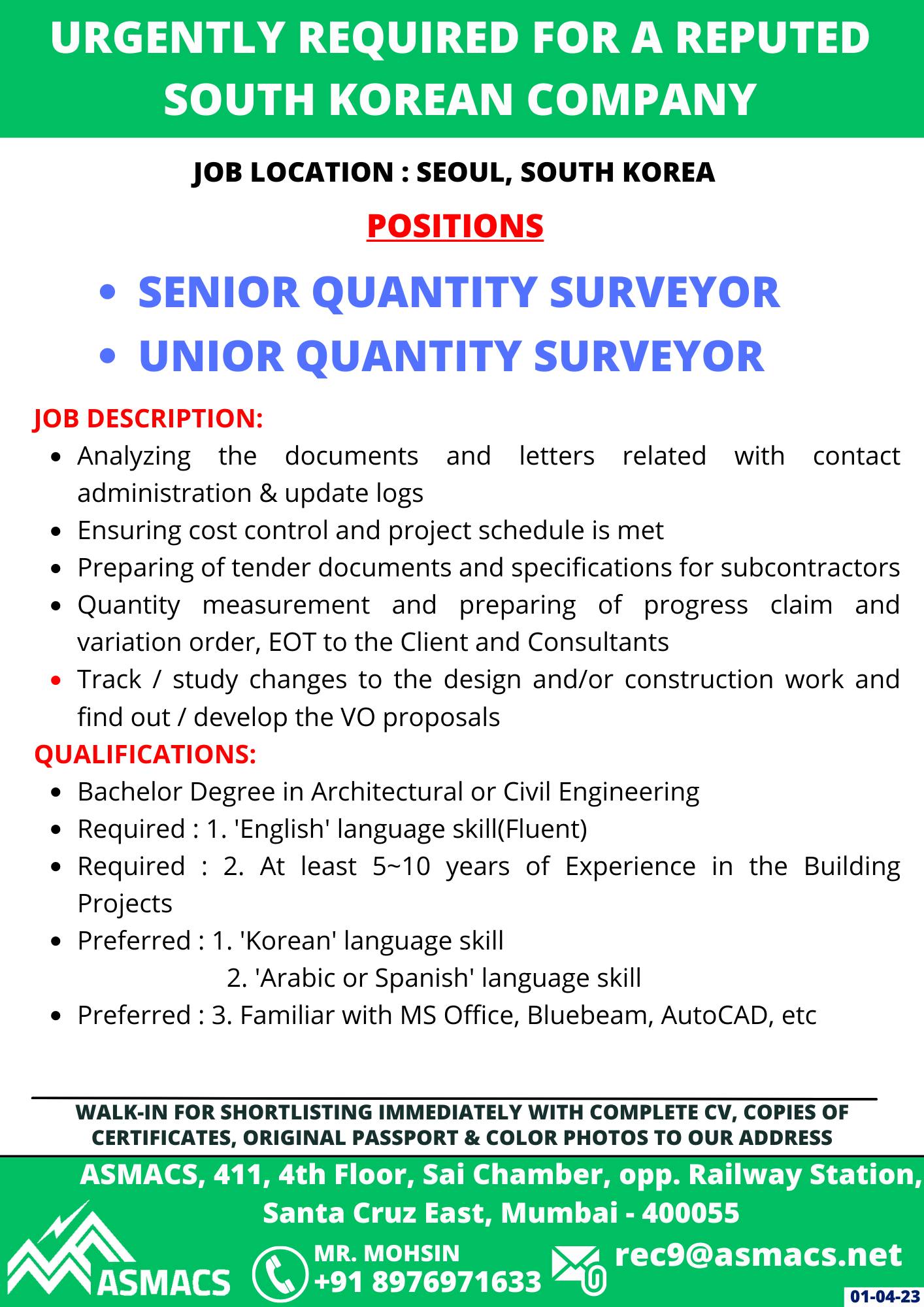 POSITIONS - SENIOR QUANTITY SURVEYOR