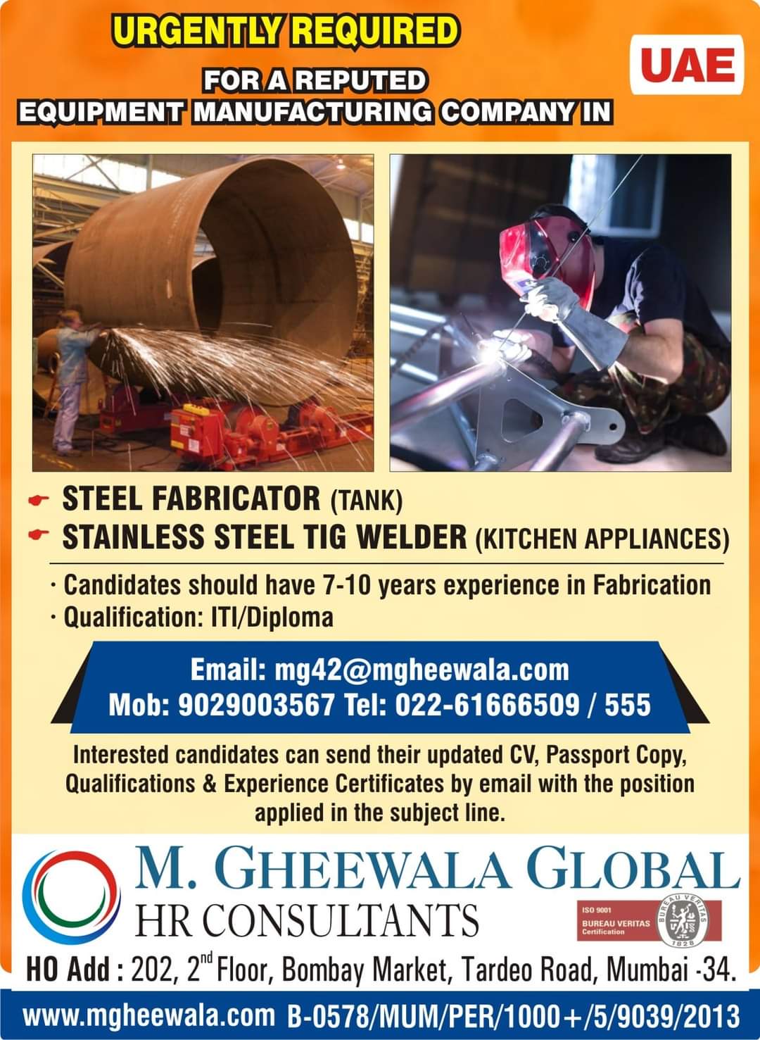 • Candidates should have 7-10 years experience in Fabrication