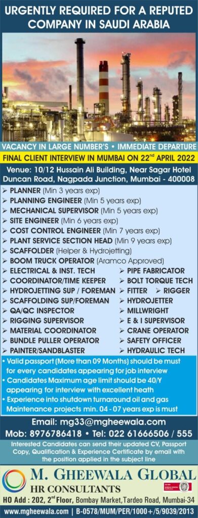 Maintenance projects min. 04 – 07 years exp is must
