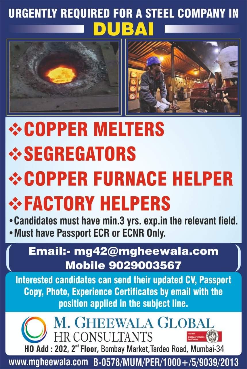 URGENTLY REQUIRED FOR A STEEL COMPANY IN