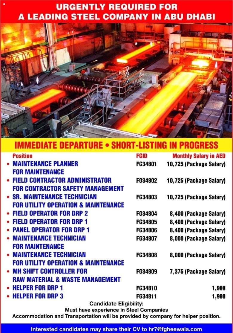 Interested candidates may share their CV to hr7@fgheewala.com