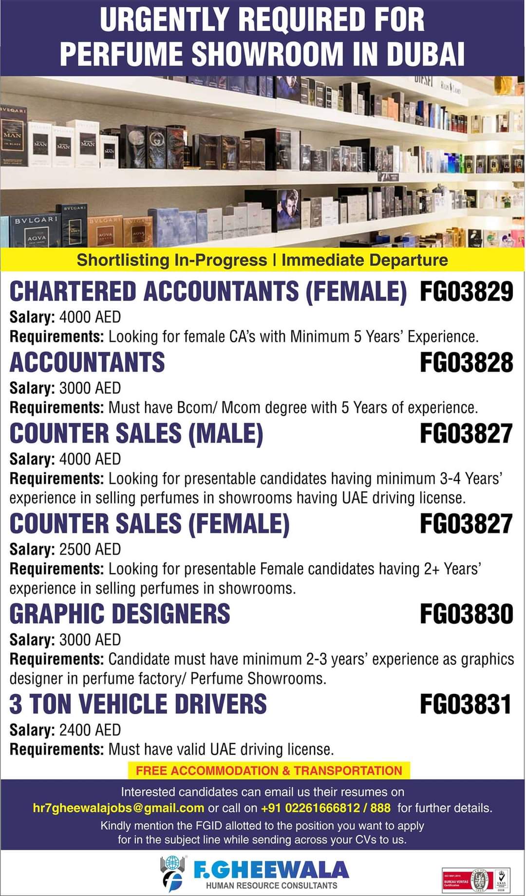 Requirements: Looking for female CA’s with Minimum 5 Years’ Experience.