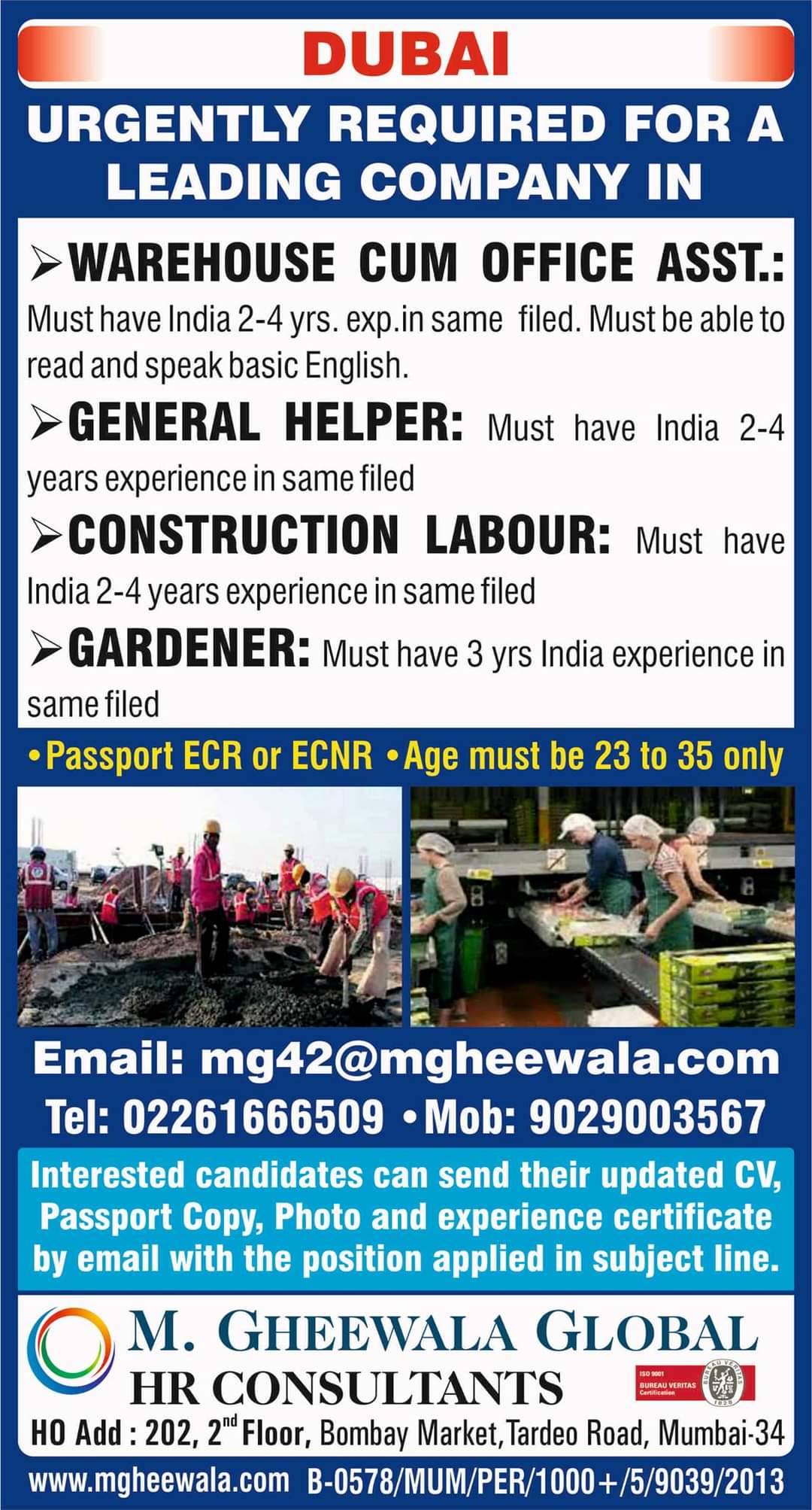 • Passport ECR or ECNR • Age must be 23 to 35 only