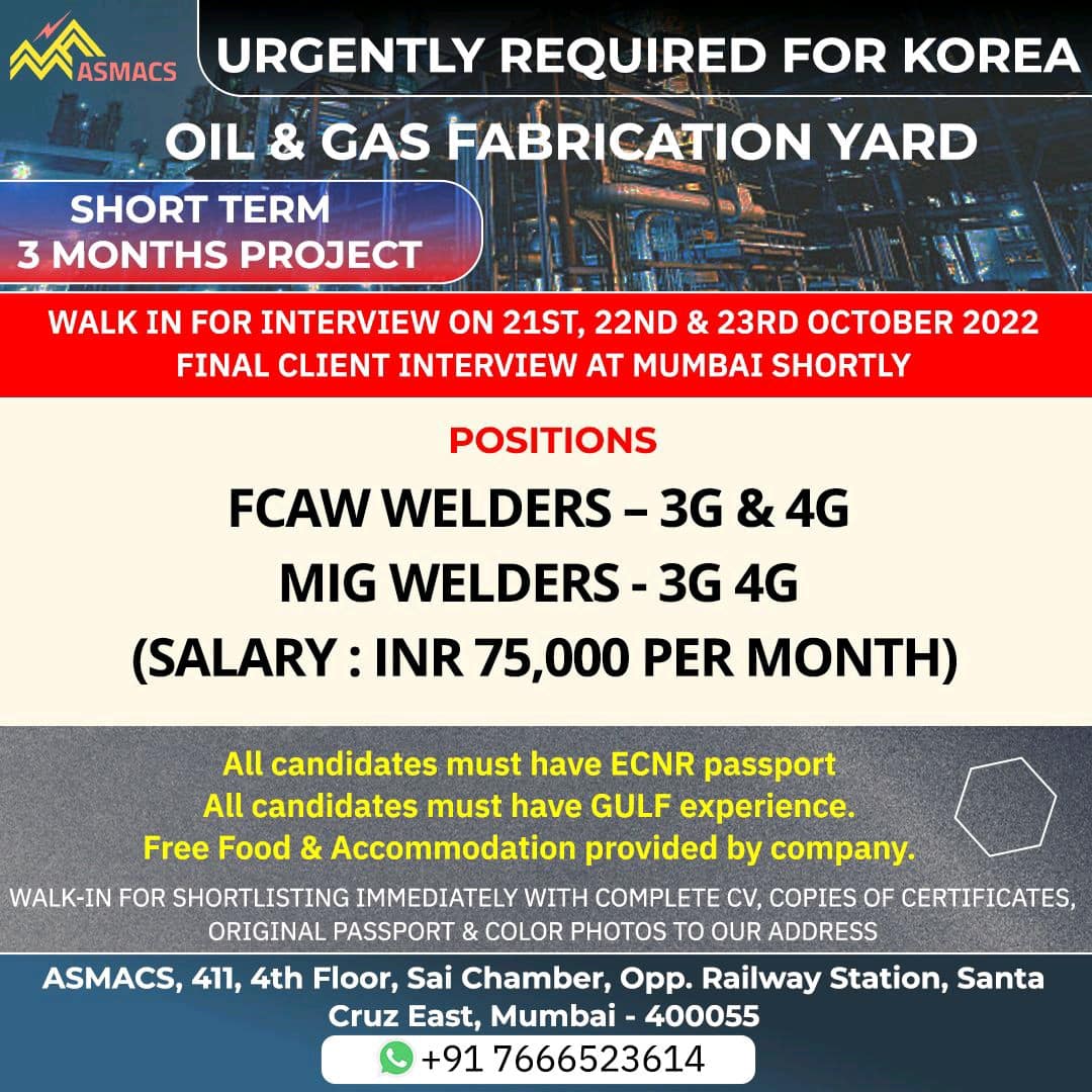 WALK IN FOR INTERVIEW ON 21ST, 22ND & 23RD OCTOBER 2022