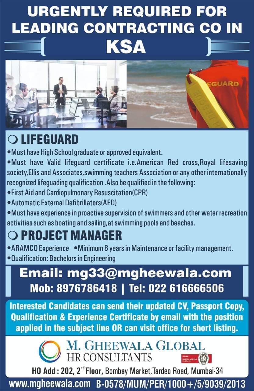 • ARAMCO Experience Minimum 8 years in Maintenance or facility management.