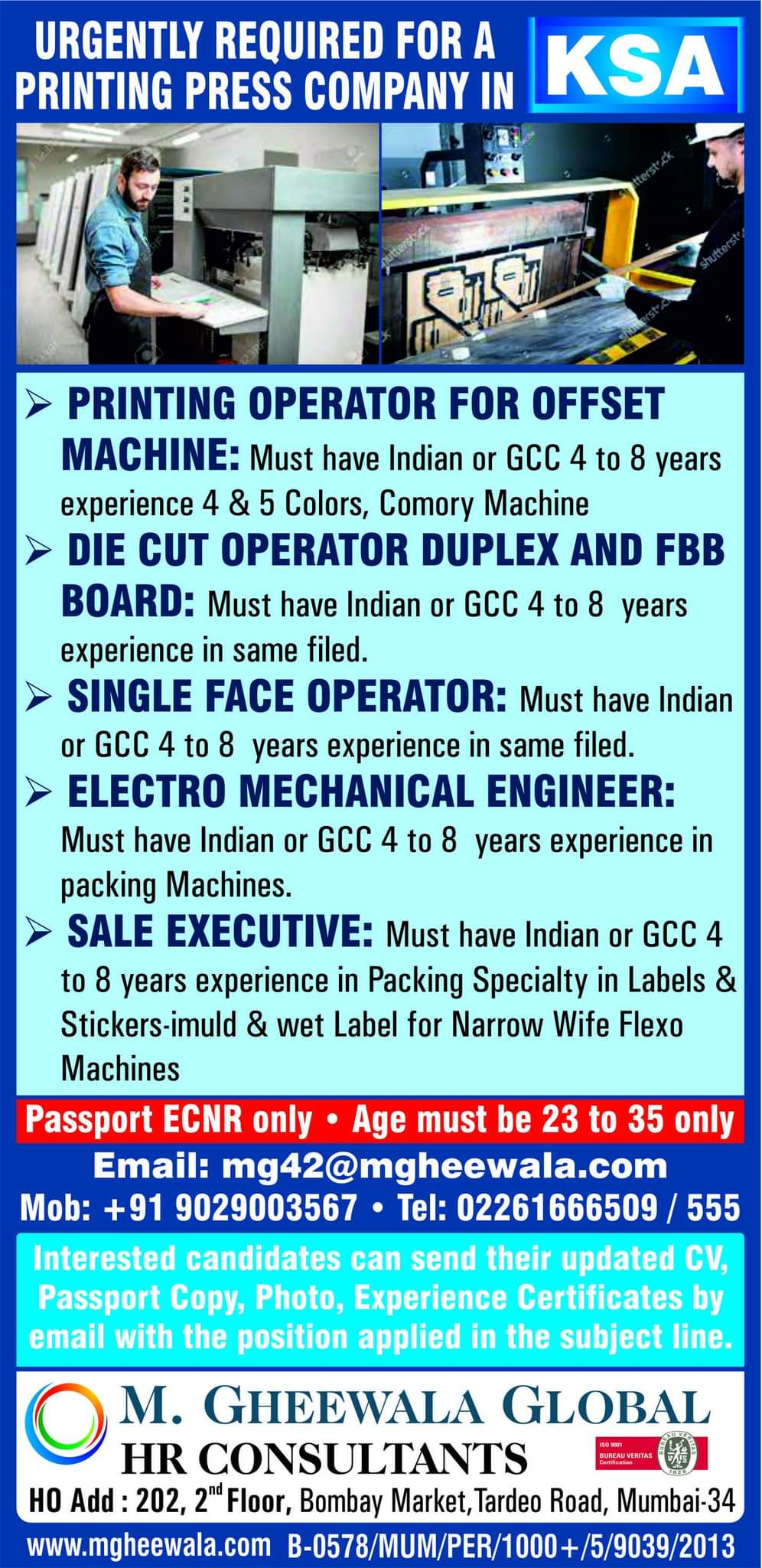 Passport ECNR only • Age must be 23 to 35 only