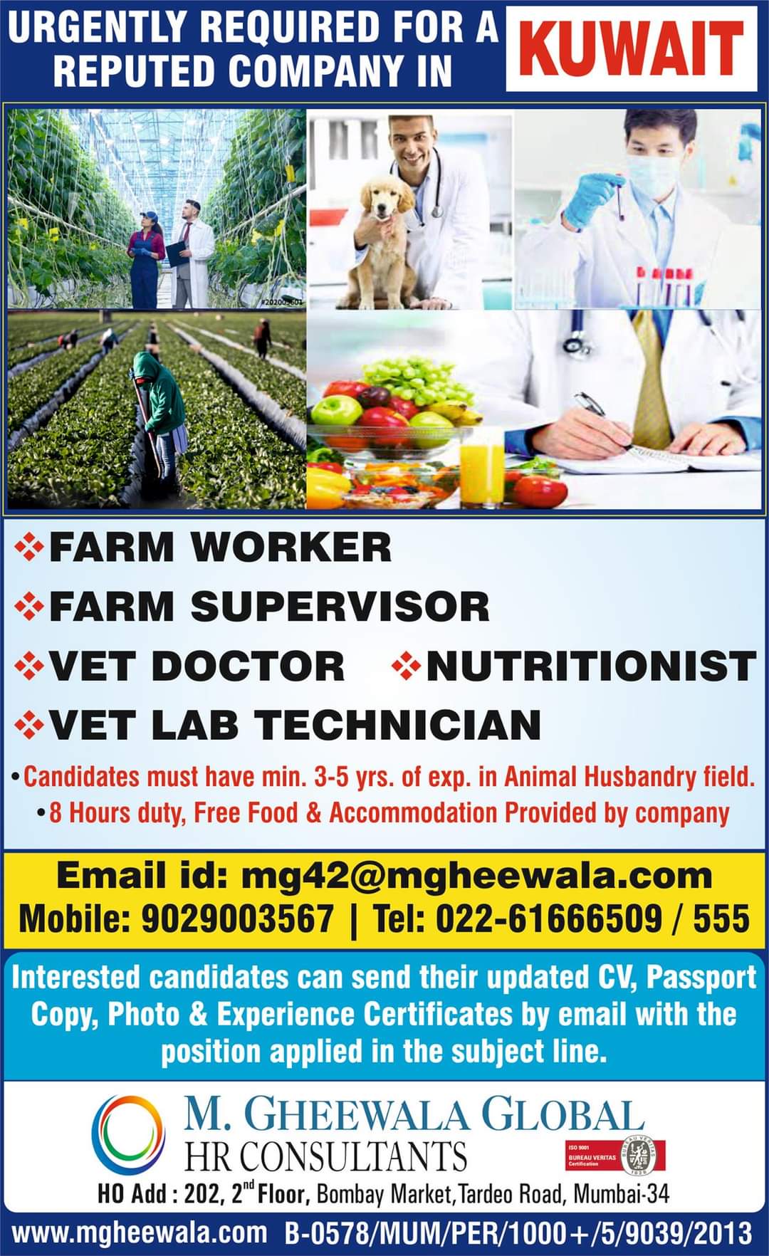 •Candidates must have min. 3-5 yrs. of exp. in Animal Husbandry field.