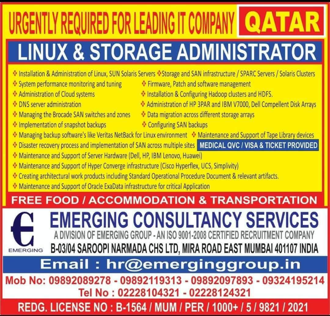 URGENTLY REQUIRED FOR LEADING IT COMPANY QATAR