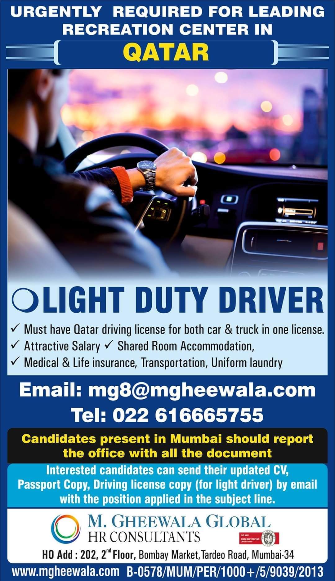 ✓ Must have Qatar driving license for both car & truck in one license.