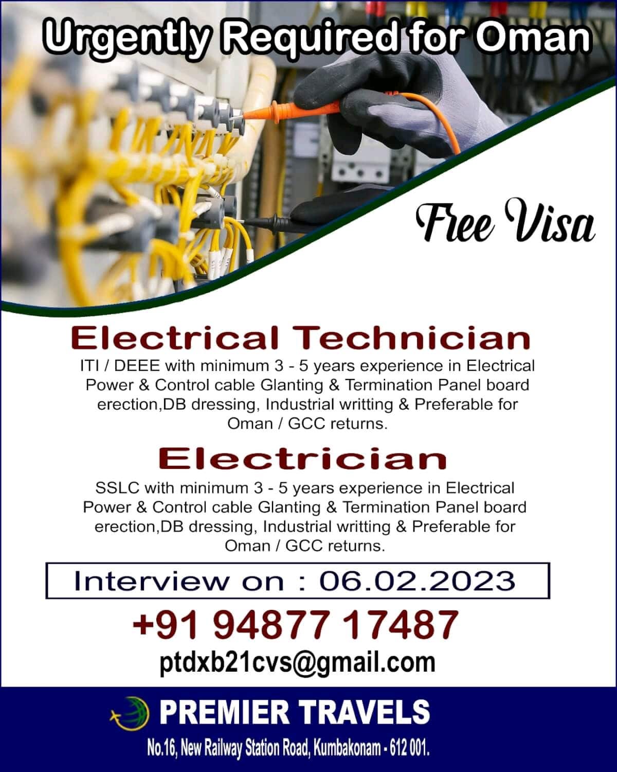 ITI / DEEE with minimum 3 – 5 years experience in Electrical