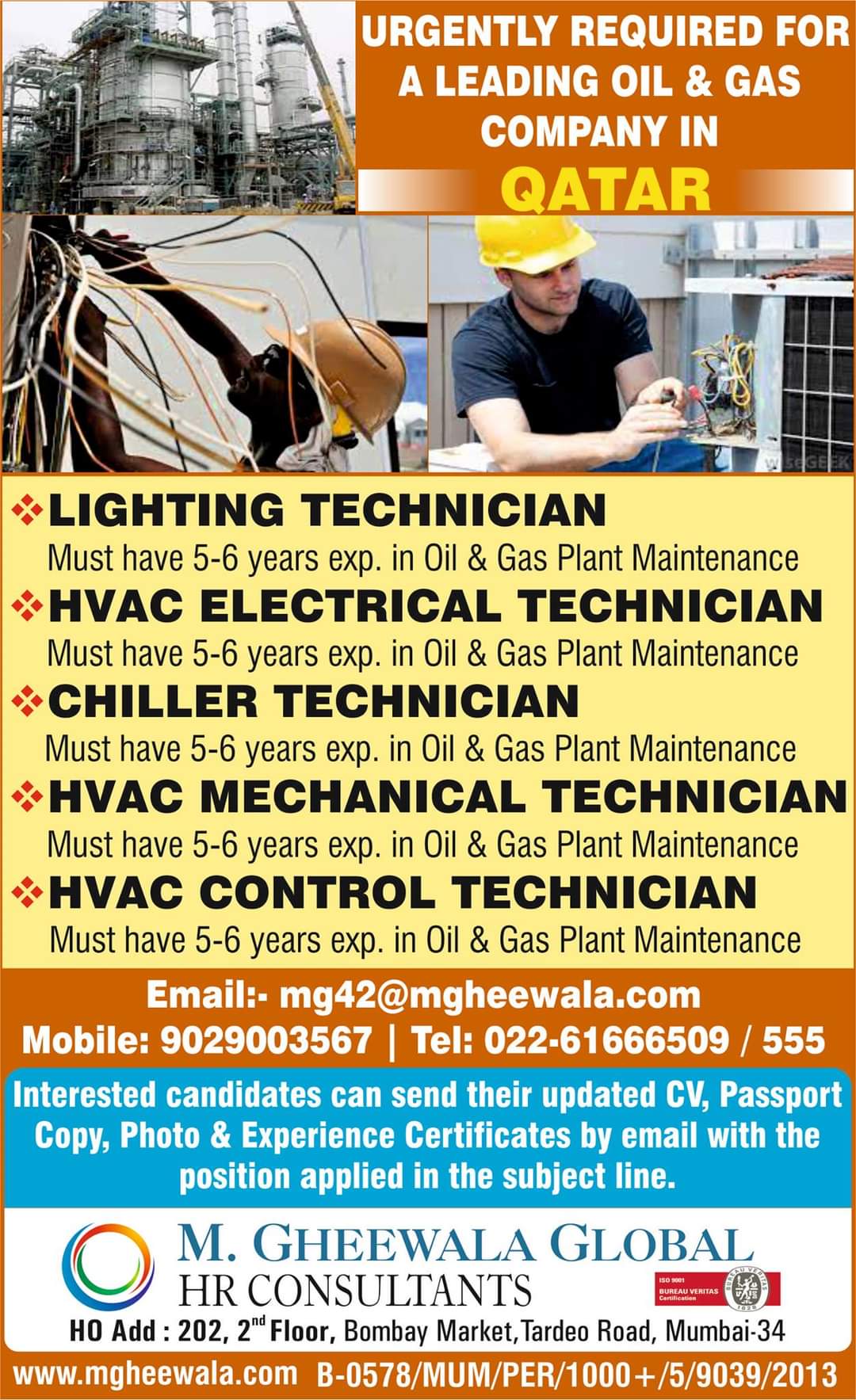 Must have 5-6 years exp. in Oil & Gas Plant Maintenance