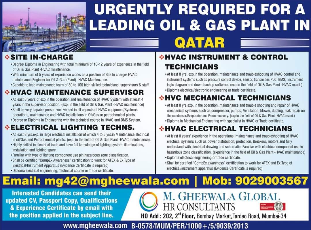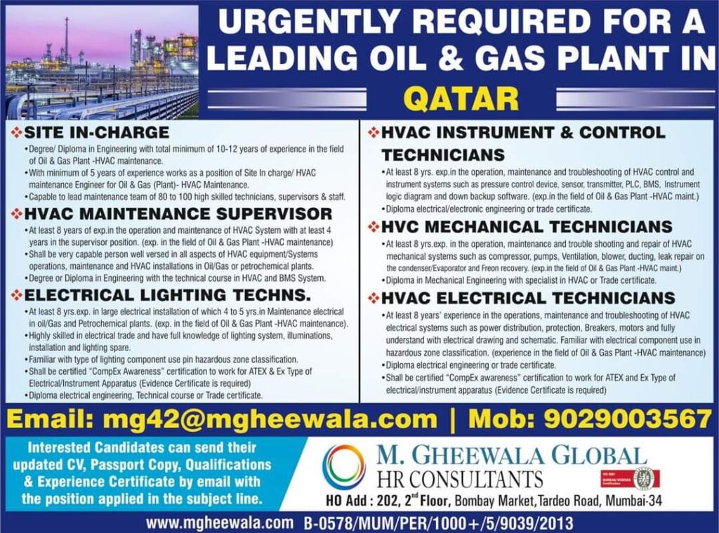 maintenance Engineer lor Oil & Gas (Plant)- HVAC Maintenance.