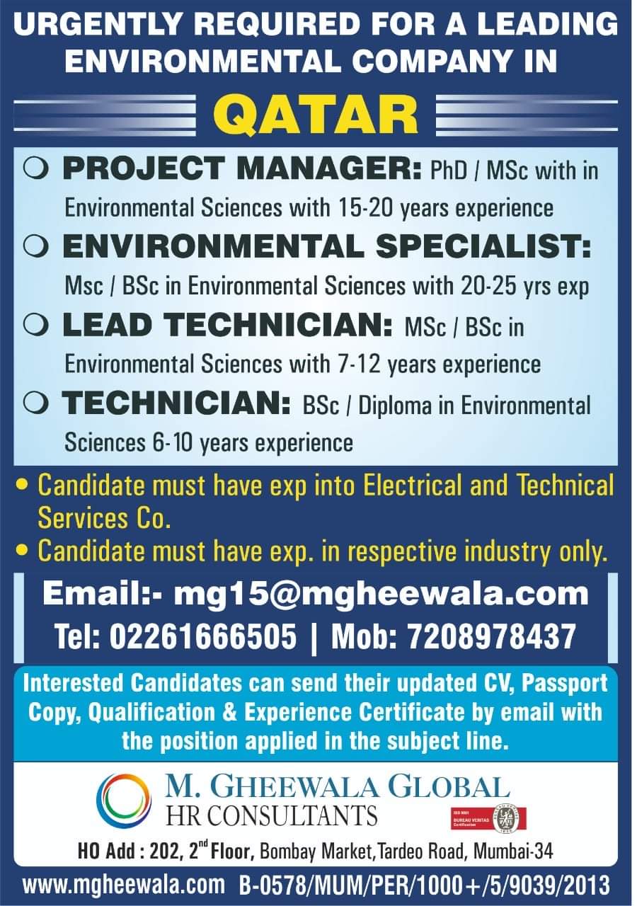 Msc / BSc in Environmental Sciences with 20-25 yrs exp