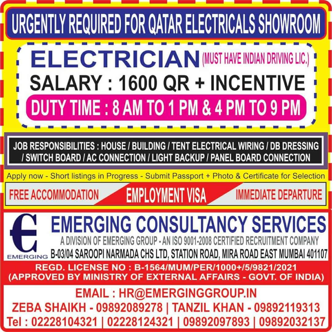 URGENTLY REQUIRED FOR QATAR ELECTRICAL SHOWROOM
