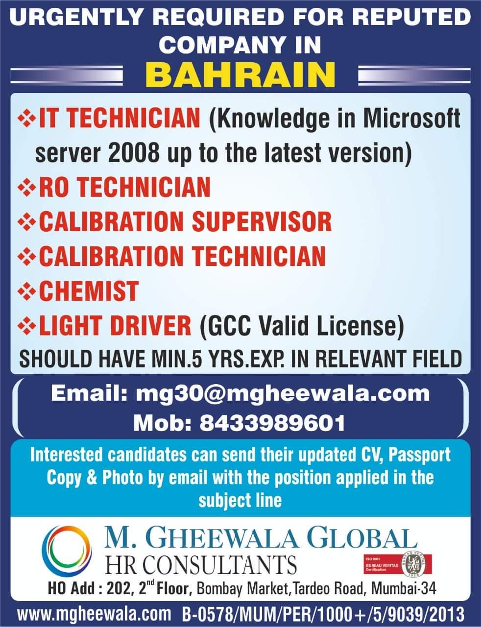 URGENTLY REQUIRED FOR REPUTED COMPANY IN BAHRAIN