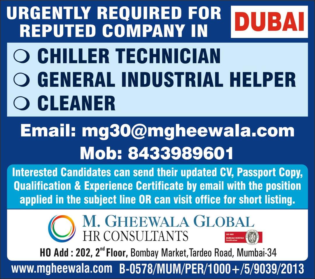 URGENTLY REQUIRED FOR REPUTED COMPANY IN DUBAI