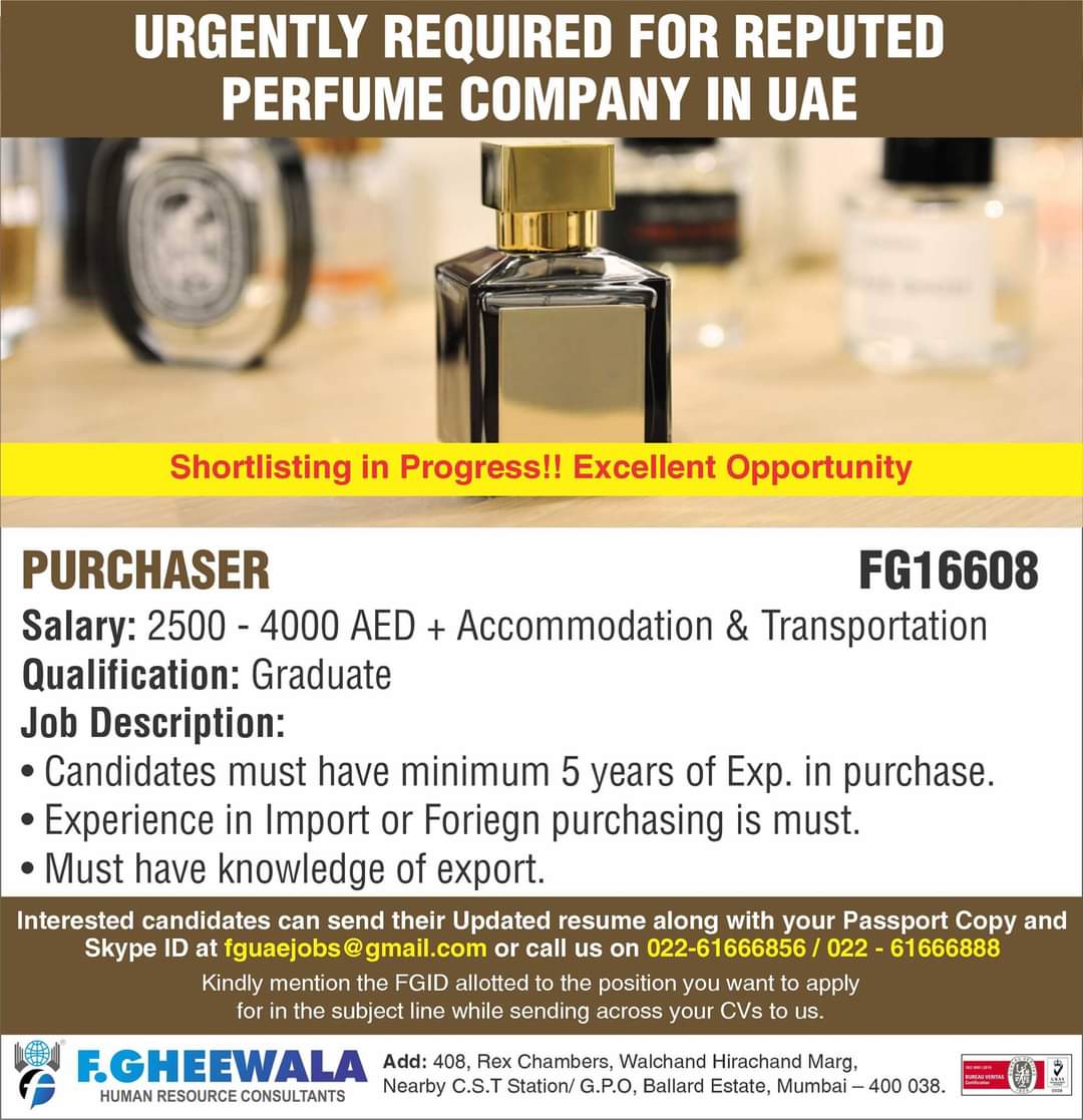 URGENTLY REQUIRED FOR REPUTED PERFUME COMPANY IN UAE