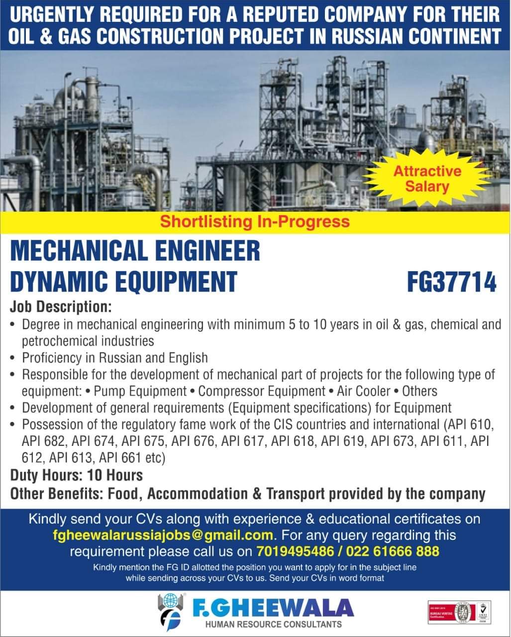 • Degree in mechanical engineering with minimum 5 to 10 years in oil & gas, chemical and