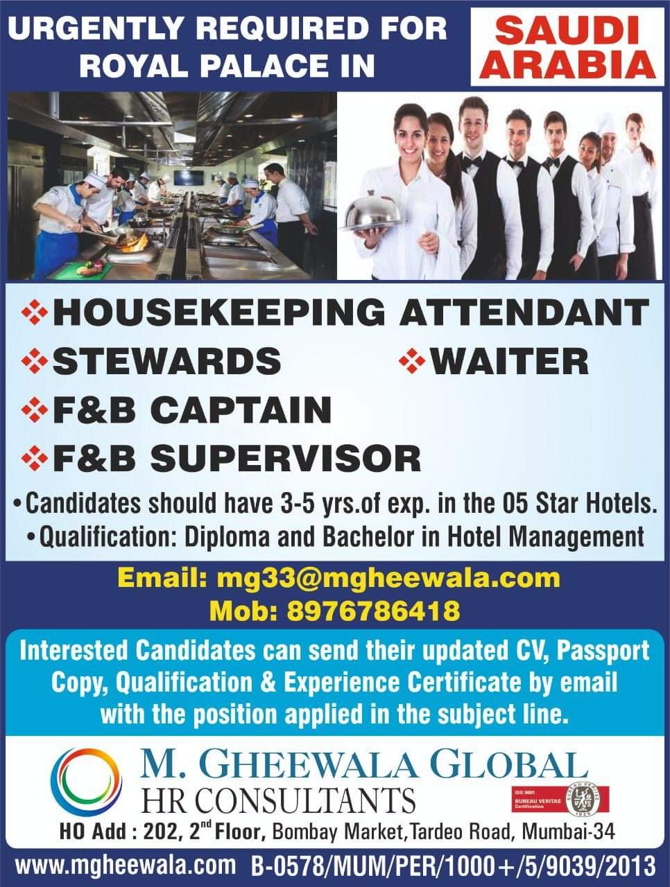 •Candidates should have 3-5 yrs.of exp. in the 05 Star Hotels.