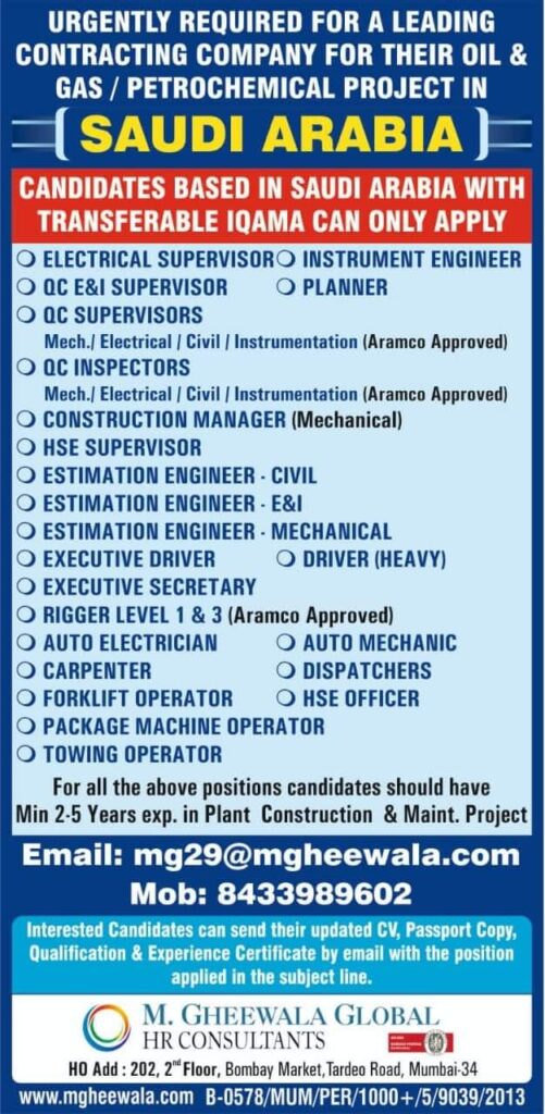 Mech./ Electrical Civil Instrumentation (Aramco Approved)
