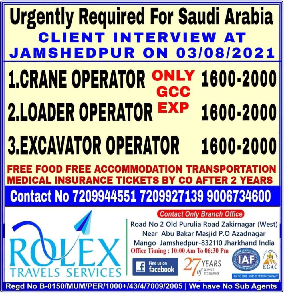 Urgently Required For Saudi Arabia