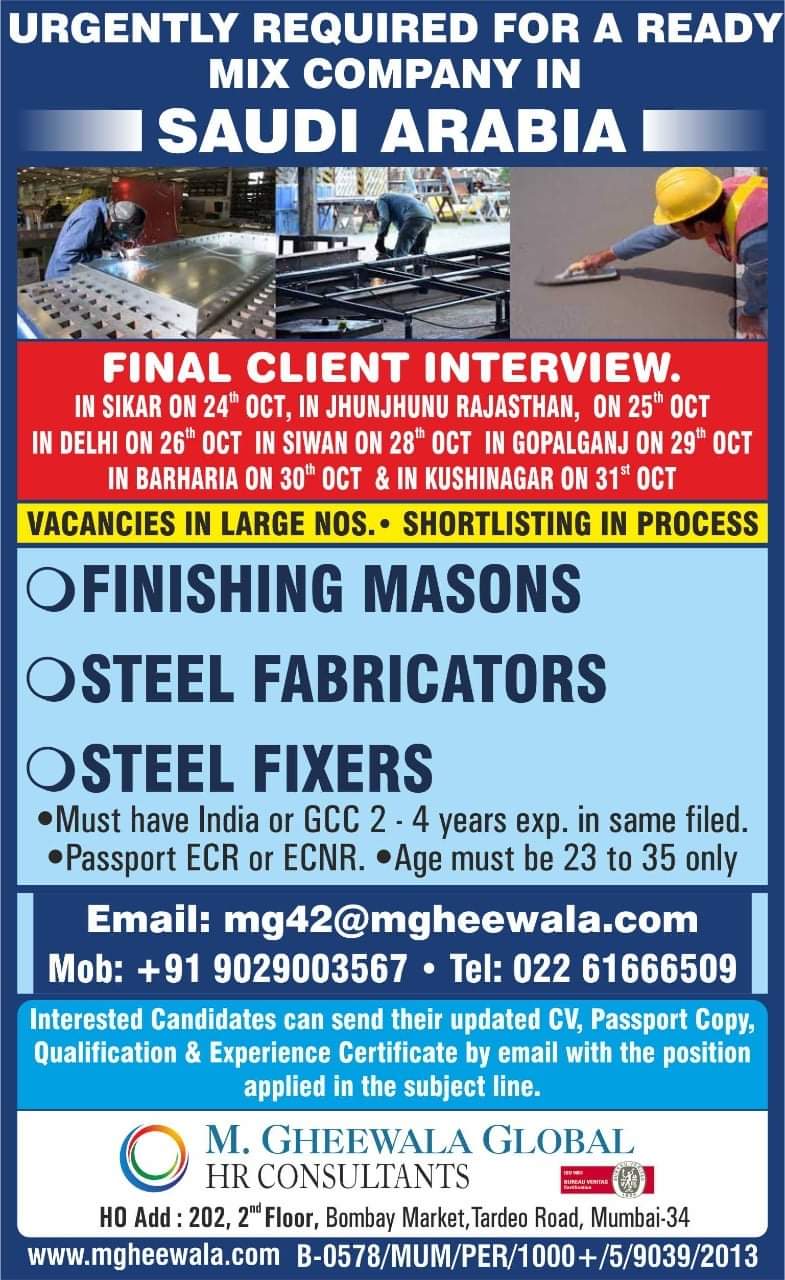 Interested candidates can send their updated CV, Passport Copy,