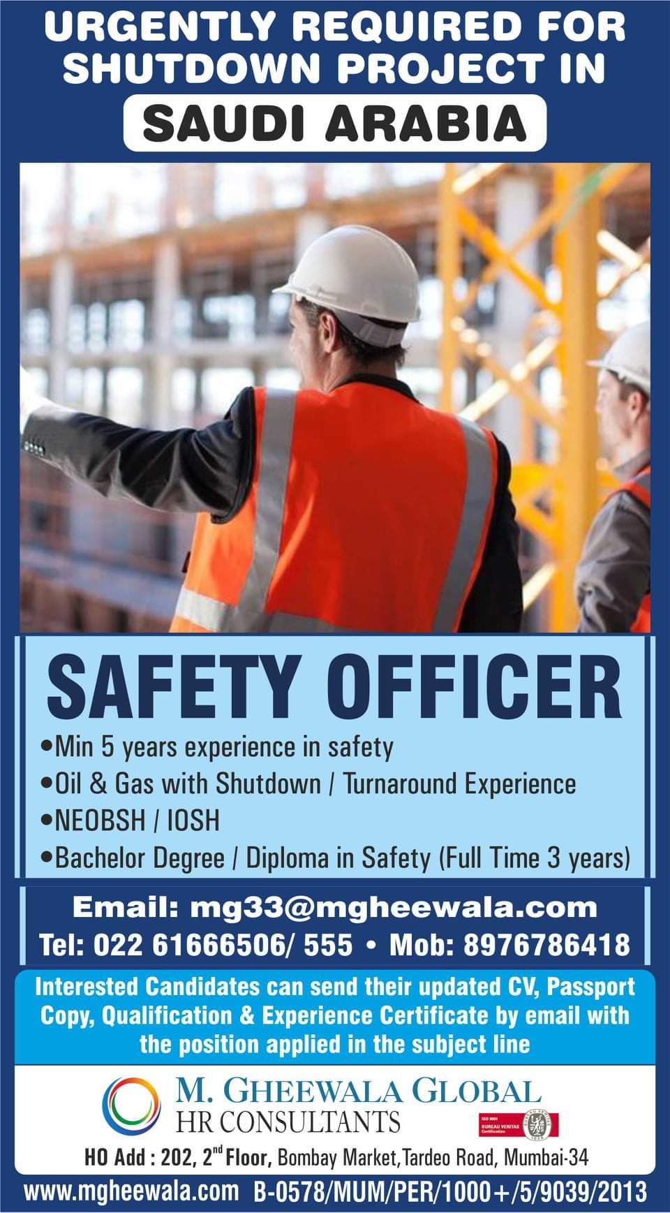 •Min 5 years experience in safety