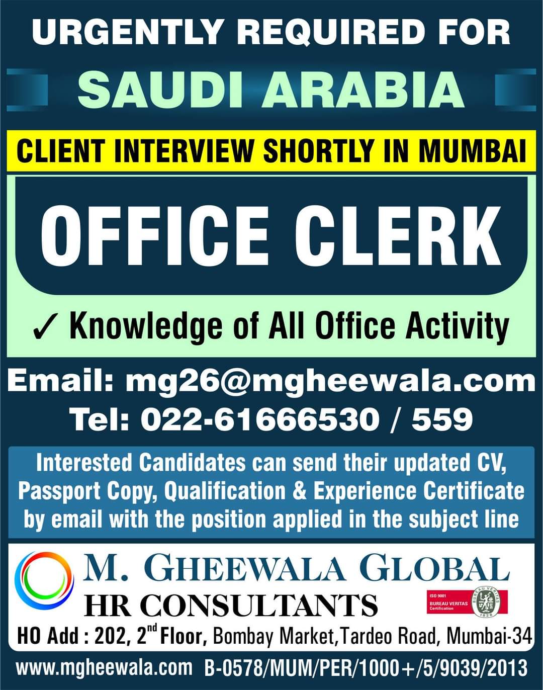 HO Add : 202, 2nd Floor, Bombay Market, Tardeo Road, Mumbai-34