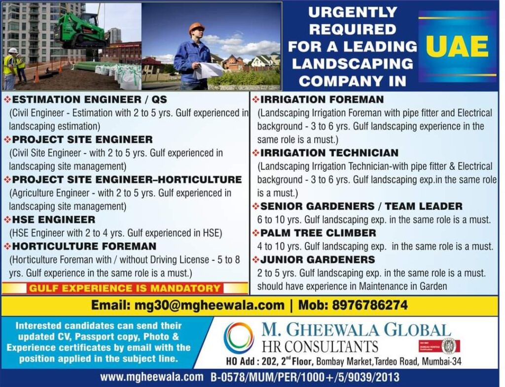 (Horticulture Foreman with / without Driving License – 5 to 8