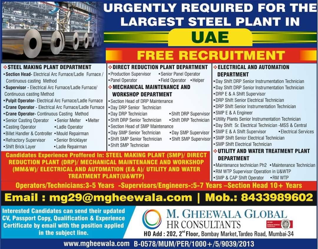 Candidates Experience Proffered In: STEEL MAKING PLANT (SMP)/ DIRECT