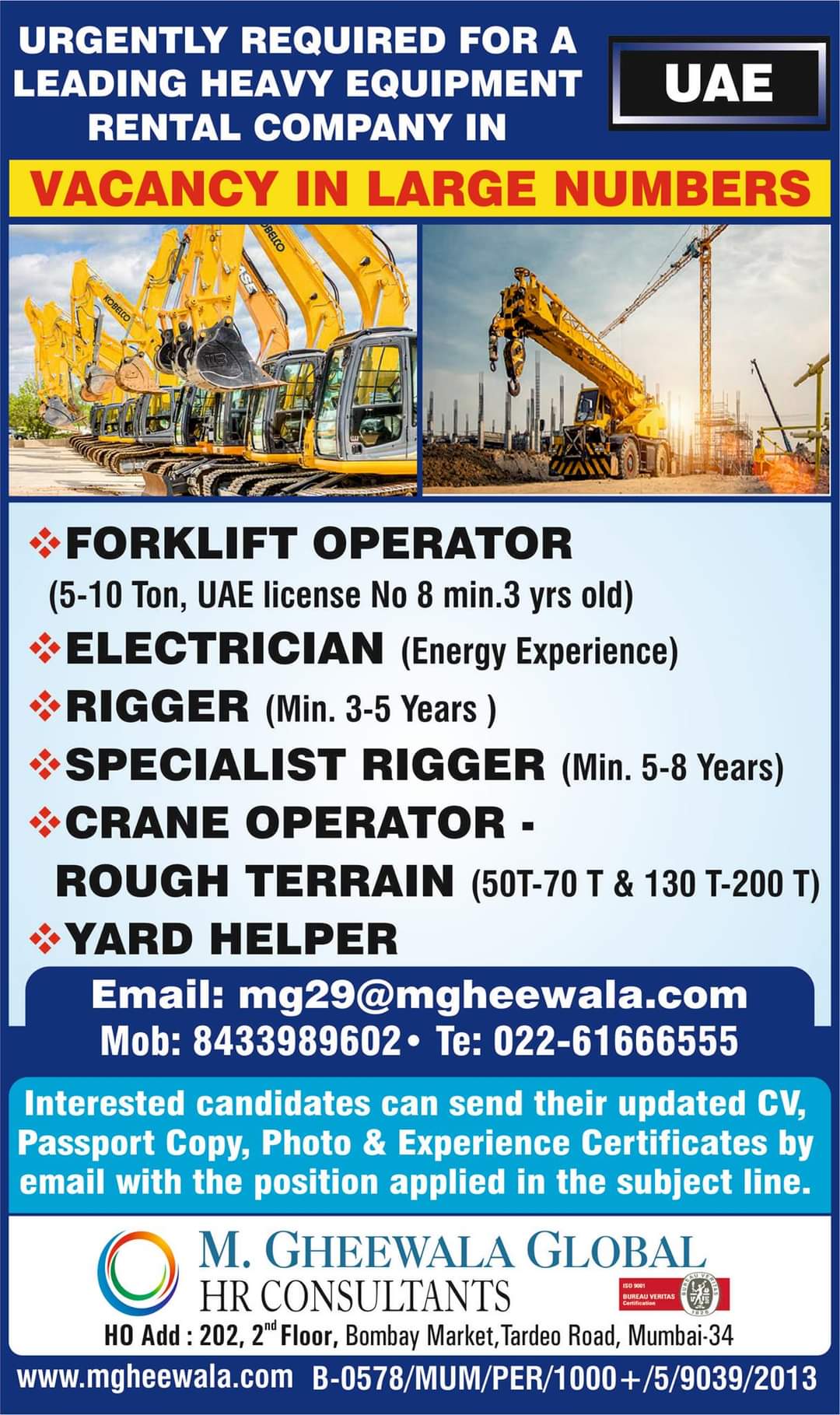 SPECIALIST RIGGER (Min. 5-8 Years)