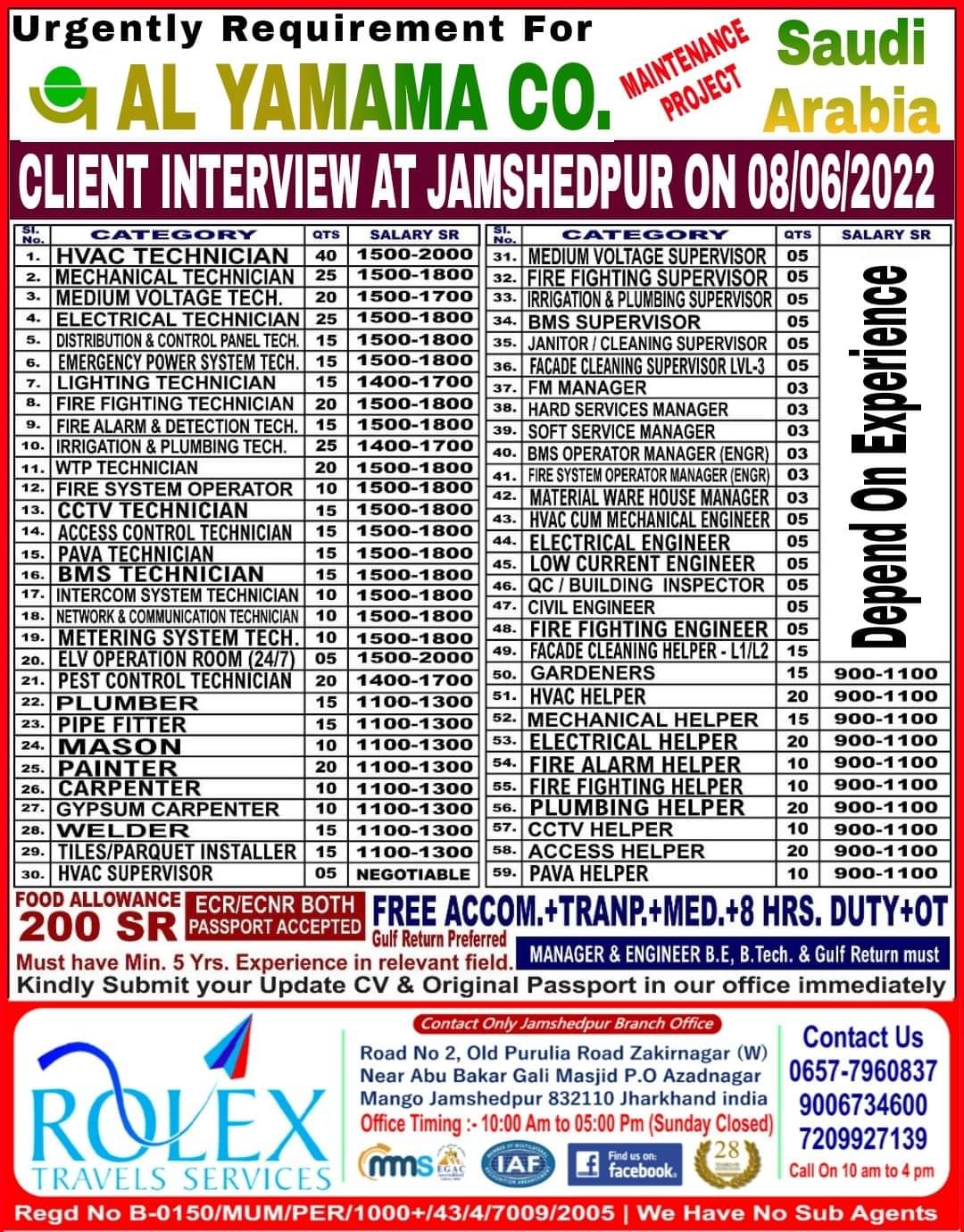Urgently Requirement For e AL YAMAMA Saudi Arabia