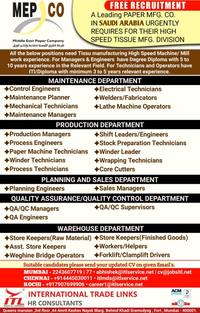 All the below positions need Tissu manufacturing High Speed Machine/ Mill